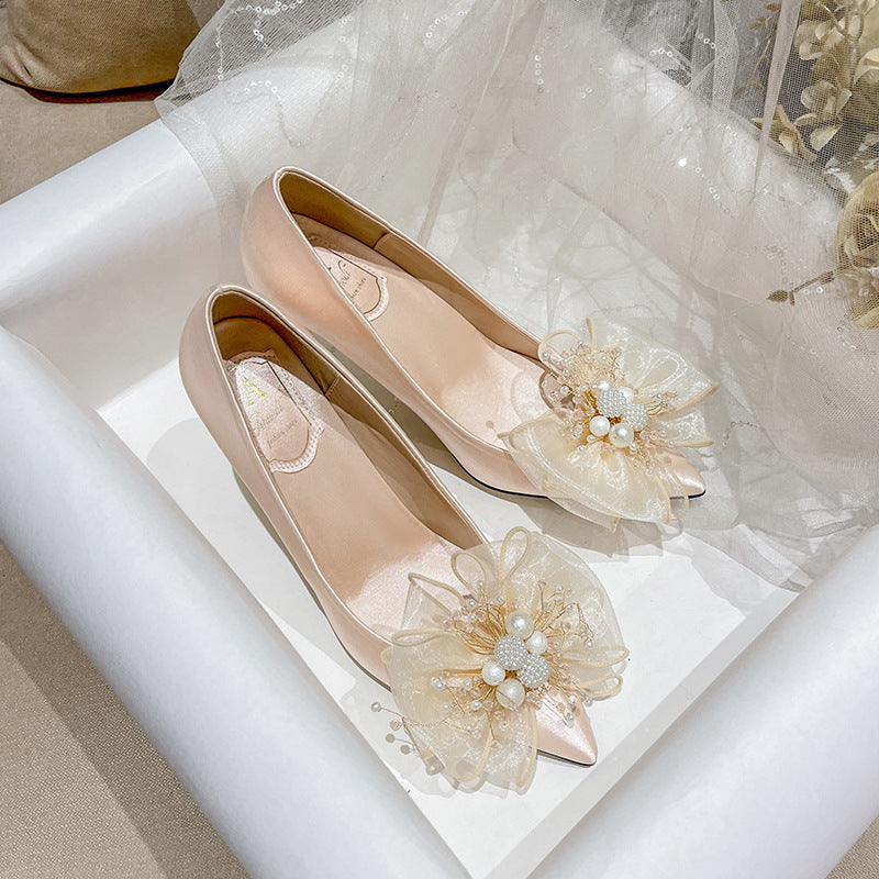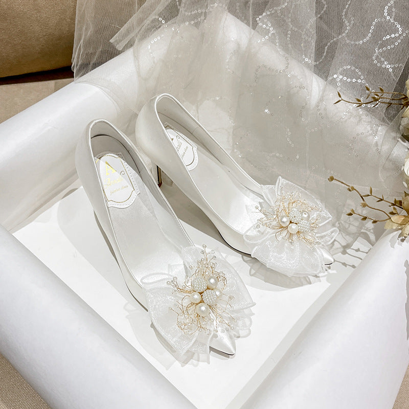 Sweet Bow Bridal Shoes White Wedding Dress