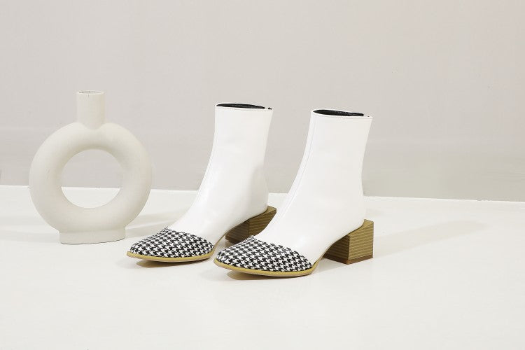 Plus Size British Short Boots Women Pointed Thick Heel Zipper Boots Leather Boots Women