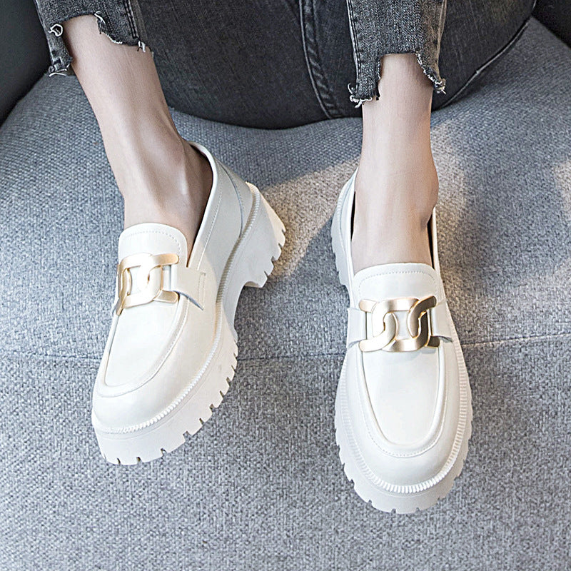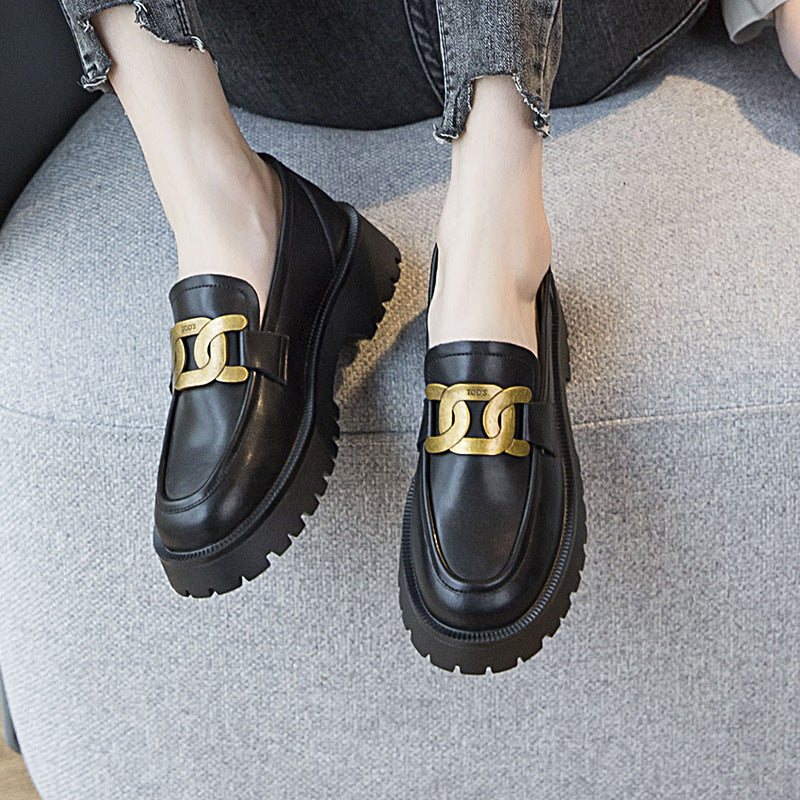 スモールレザーシューズ レディース パッチレザー 厚底 厚ヒール スポーツ レジャー